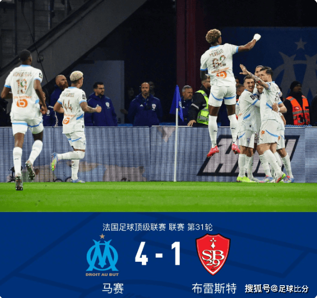最终,全场比赛结束,马赛主场4-1战胜布雷斯特。